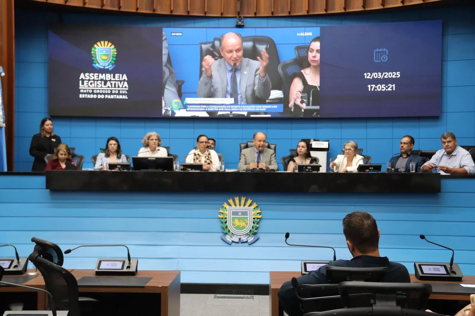 Na tarde desta quarta-feira (12), a Assembleia Legislativa de Mato Grosso do Sul realizou a Audiência Pública com o tema “Caminhos para a consagração do direito à educação com garantia da aprendizagem: a questão dos celulares e os critérios do VAAR”. O evento reuniu especialistas, gestores, educadores e representantes da sociedade civil para debater questões centrais da educação pública, como a regulamentação do uso de celulares em sala de aula e os critérios para o recebimento dos recursos do Valor Anual por Aluno (VAAR).