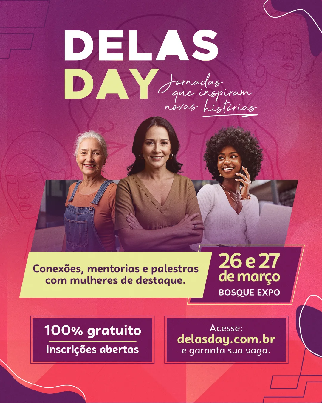 Voltado para lideranças, empresárias, aspirantes a empreendedoras, estudantes, investidores e apoiadores do protagonismo feminino, o Delas Day é um espaço de inspiração, conexão e aprendizado. A participação é gratuita, e as inscrições podem ser feitas no site delasday.com.br.