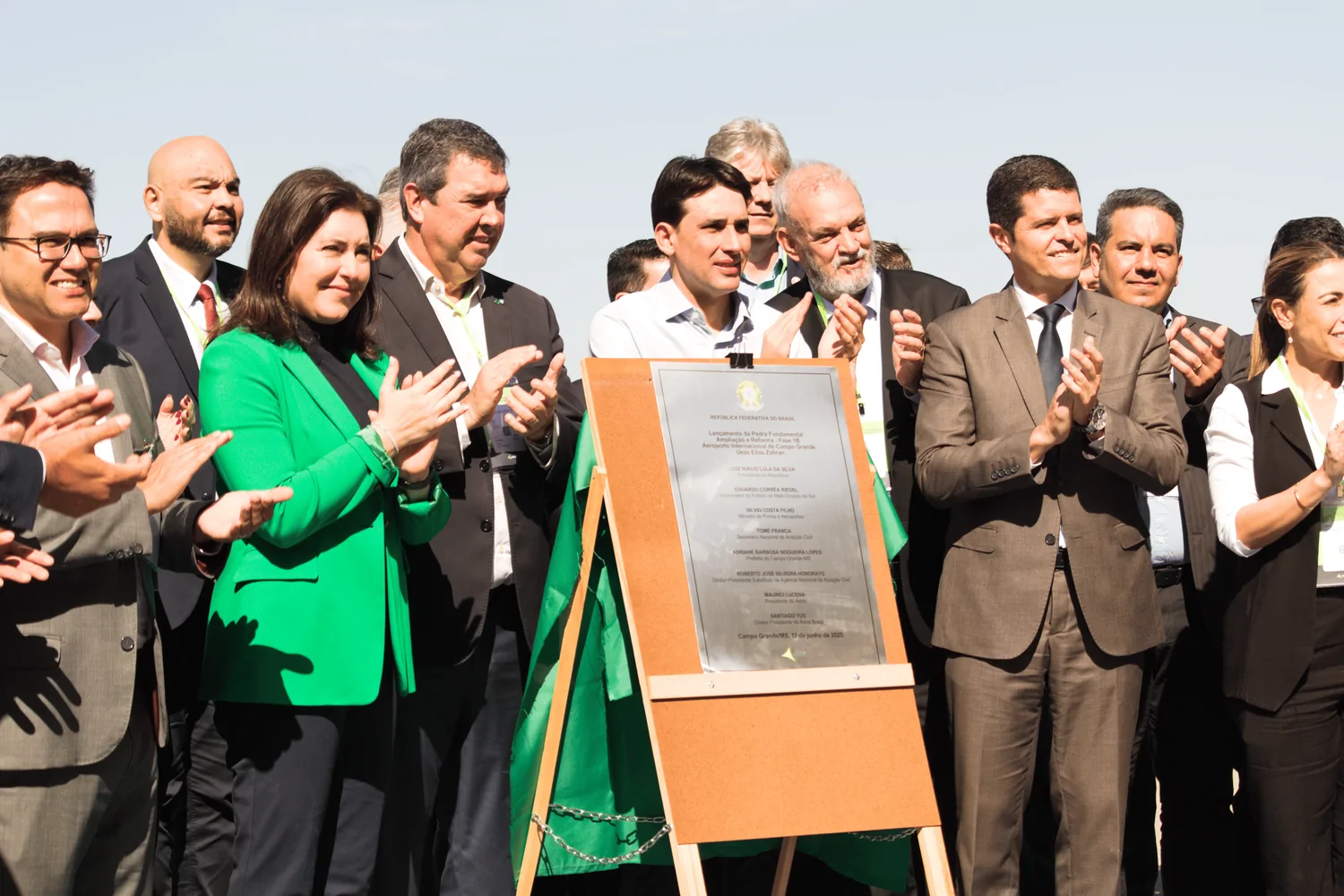Geraldo Resende participou da cerimônia de início de obras em três aeroportos em Campo Grande, juntamente com o governador Eduardo Riedel, ministros Silvio Costa (Portos e Aeroportos) e Simone Tebet (Planejamento), entre outras autoridades.