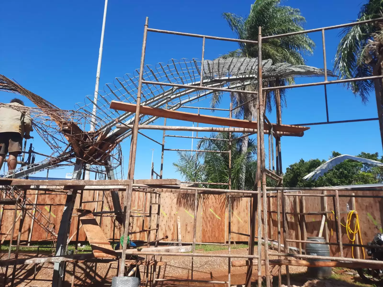 “A obra está bem encaminhada, dentro do prazo e até adiantada. Está ficando perfeita, tanto na restauração quanto na parte estrutural. Já estamos colocando tela em uma parte da asa e aplicando o zarcão, que é a base para a finalização. Até sexta-feira, fecharemos toda a montagem da estrutura, soldas e ajustes. Deixo a ave praticamente pronta hoje, restando apenas a aplicação do concreto e argamassa. A revitalização das outras duas esculturas será rápida, graças ao trabalho bem planejado.”